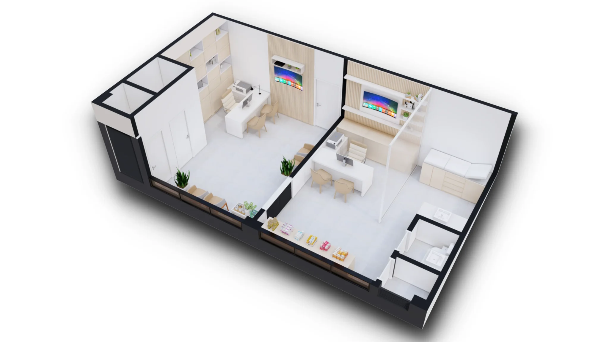Espaço Amplo e Integrado: Com diversas áreas de atendimento e estações de trabalho, a sala Advanced é ideal para empresas com várias equipes ou clínicas que precisam de mais áreas de consulta e atendimento.
